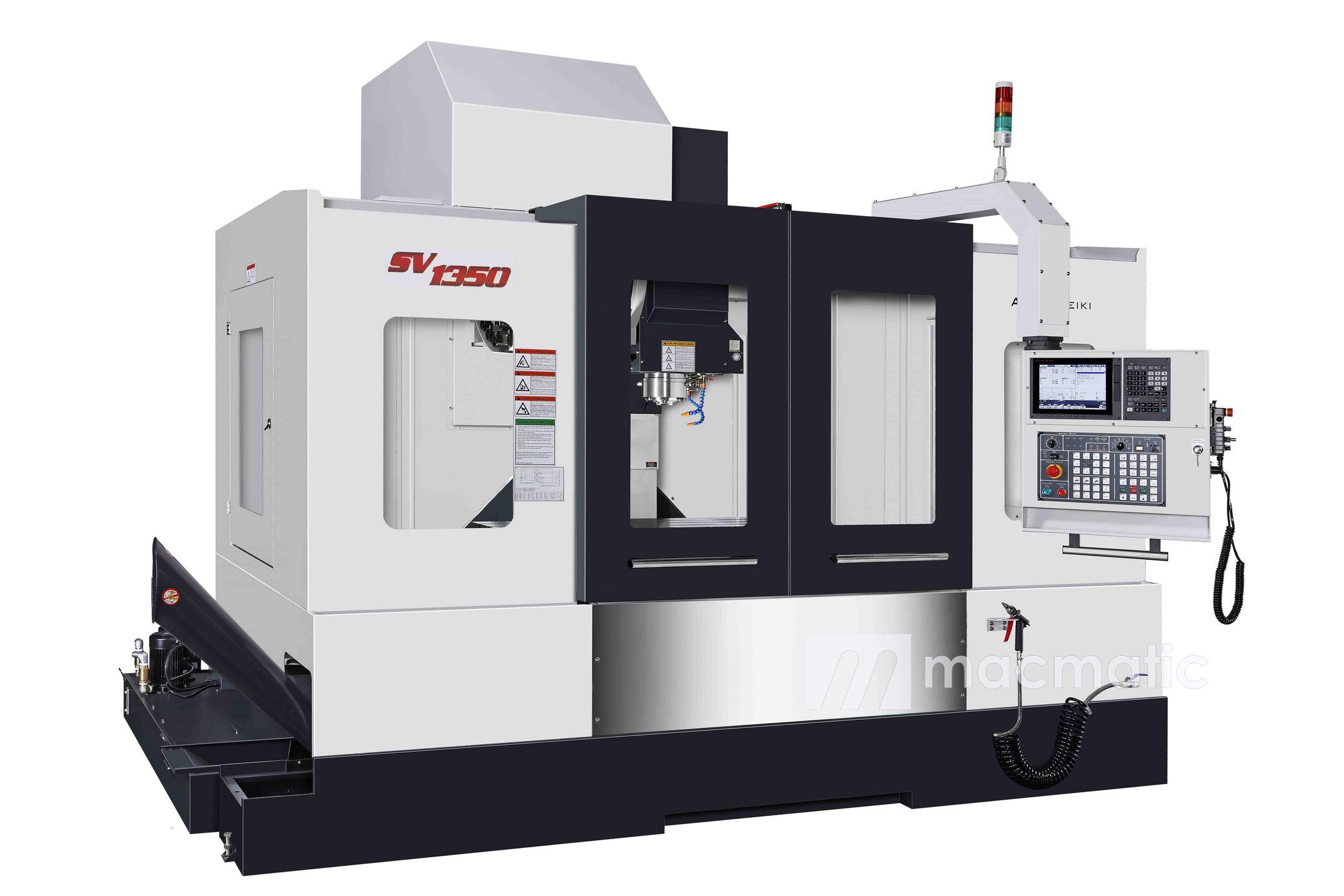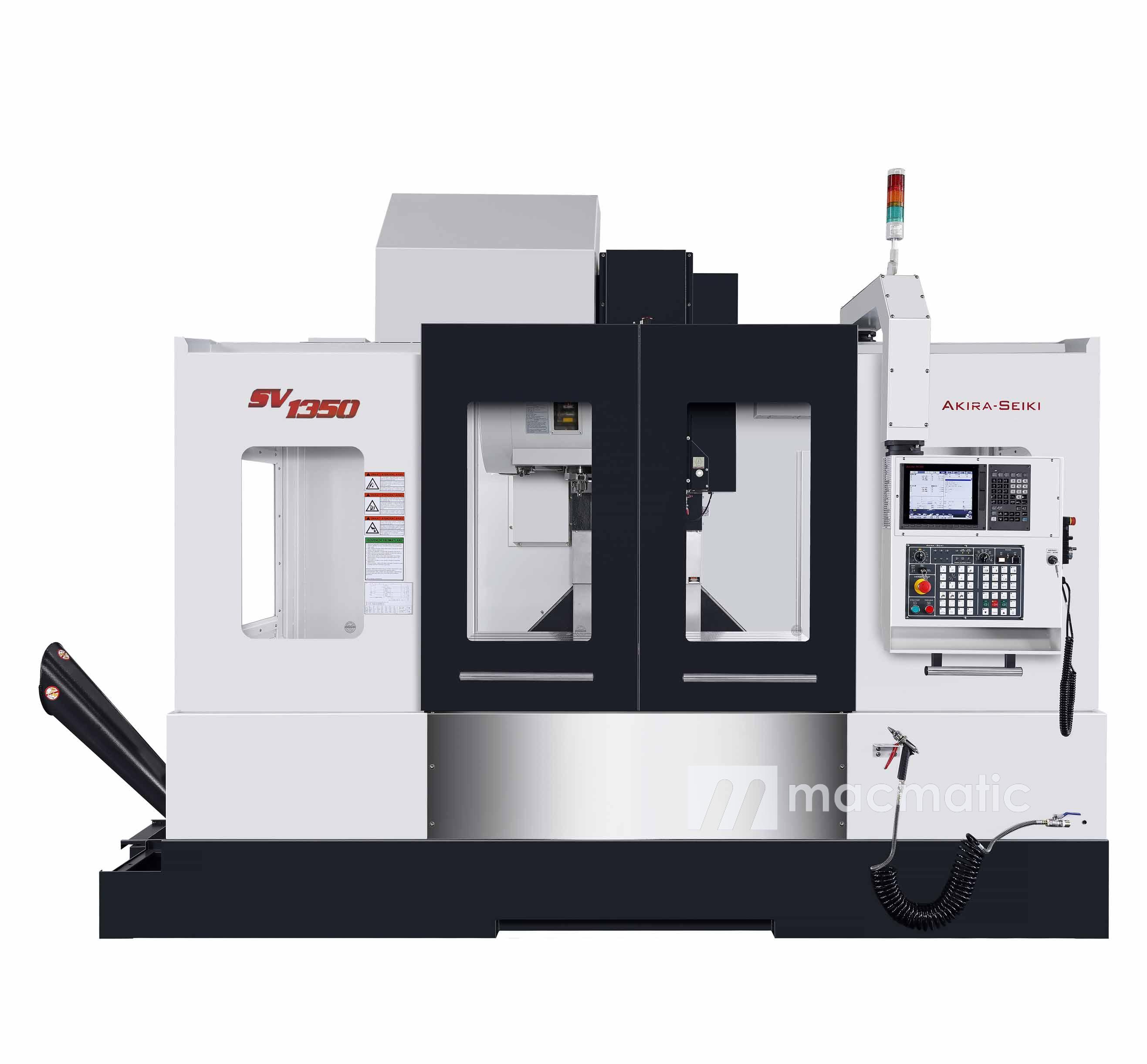 Vertikální frézovací centrum Akira Seiki SV1350 je zástupcem nejvyšší řady frézovacích center v nabídce Akira Seiki. Stroj má konstrukci typu C s vřeteníkem pohyblivým v ose Z a křížový stůl pohyblivý v osách Y a X. Veškeré strukturální komponenty stoje tzn. lože, stojan, vřeteník, příčný suport i pracovní stůl jsou vyrobeny z odlitků z šedé litiny. Lineární osy X a Y jsou uloženy na japonském vysokozátěžovém valivém vedení značky THK. Osa Z je osazena kluzným vedením pro větší tuhost a odolnost vůči přetížení bouráním. Stroj byl navržen s maximálním důrazem na vysokou přesnost, tuhost a dynamiku obrábění při zachování příznivého poměru mezi cenou a výkony stroje. Ve srovnání s konkurenčními produkty vyniká Akira Seiki SV1350 vyšší tuhostí a hmotností, výkonnějšími vřeteny s max. výkonem až 32 kW, lepší dynamikou a větší kapacitou zásobníku nástrojů (standardně ramenový výměník s kapacitou 36 nástrojů a volitelně 60 nástrojů).